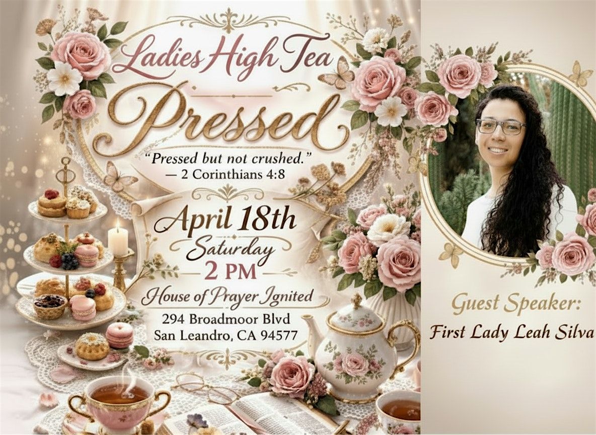 Step into an afternoon of grace and renewal at our Ladies High Tea — a time to gather, reflect, and celebrate the beauty of being pressed yet ignited by divine purpose.
