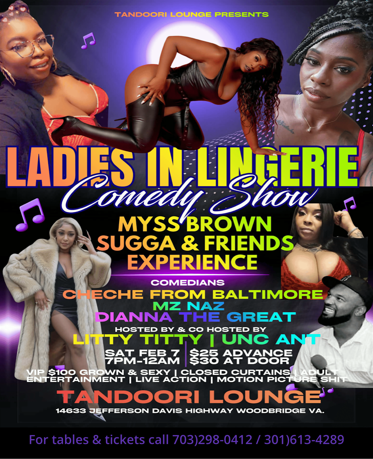 The after-party features The Brown Sugga Experience, a cabaret-style performance with confident, bold, and playful dancers bringing elevated nightlife energy to the room. Expect music, movement, audience interaction, and a fun adult-only atmosphere designed for celebration and entertainment.