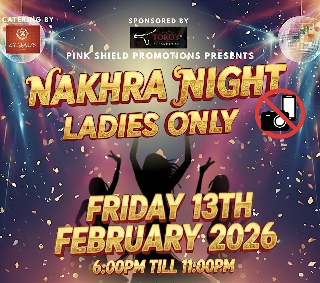 Get ready, ladies! Nakhra Night is your exclusive invitation to let your hair down, kick back, and enjoy a fantastic evening curated entirely for you. This is the ultimate ladies' night out—a safe, private space designed for you to truly let loose and be present in the moment! Enjoy a delicious 3 course dinner catered by Zymal’s Catering. Be entertained by our fab female dhol player and live female singers. All female staff and security, and a strict no cameras policy.