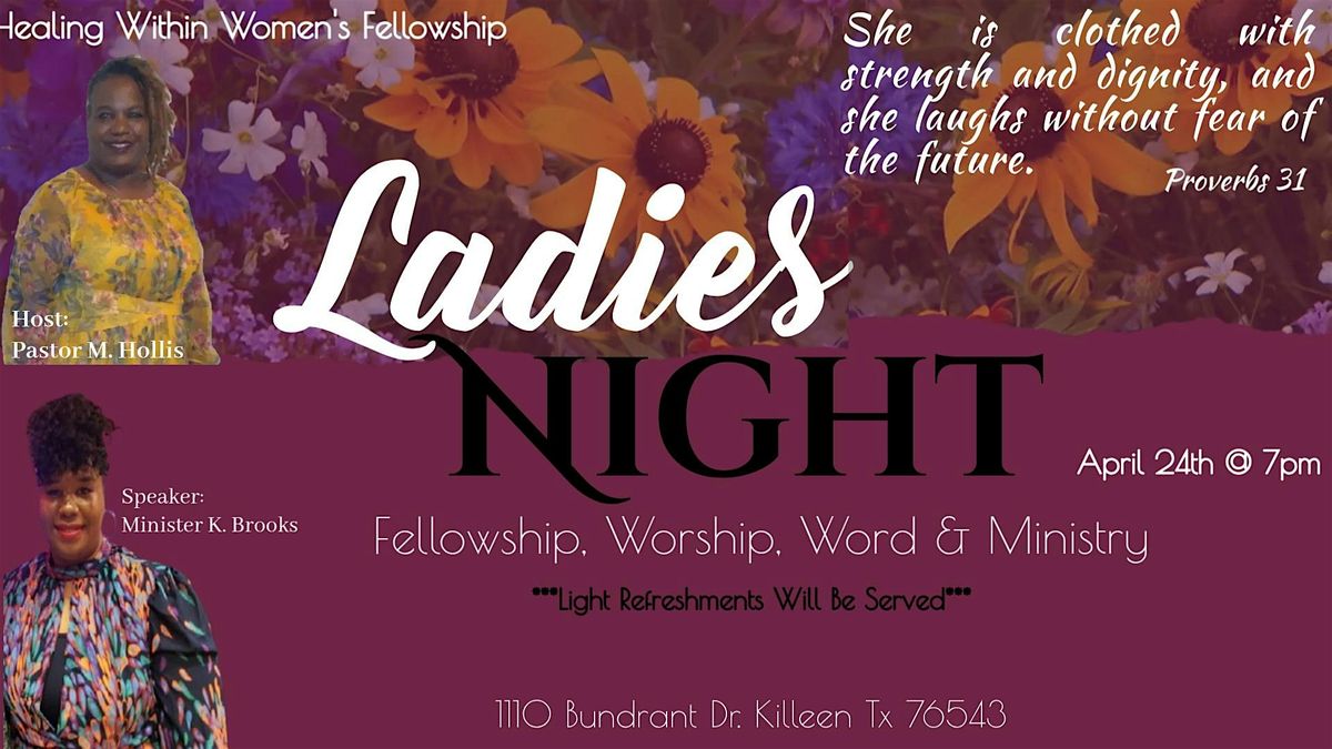 Calling all ladies! Join us for an unforgettable evening filled with fellowship, worship, word, and ministry. As we unite together in Christ to uplift and encourage one another in the faith to walk in confidence in who God has us to be. We look forward to having you there!