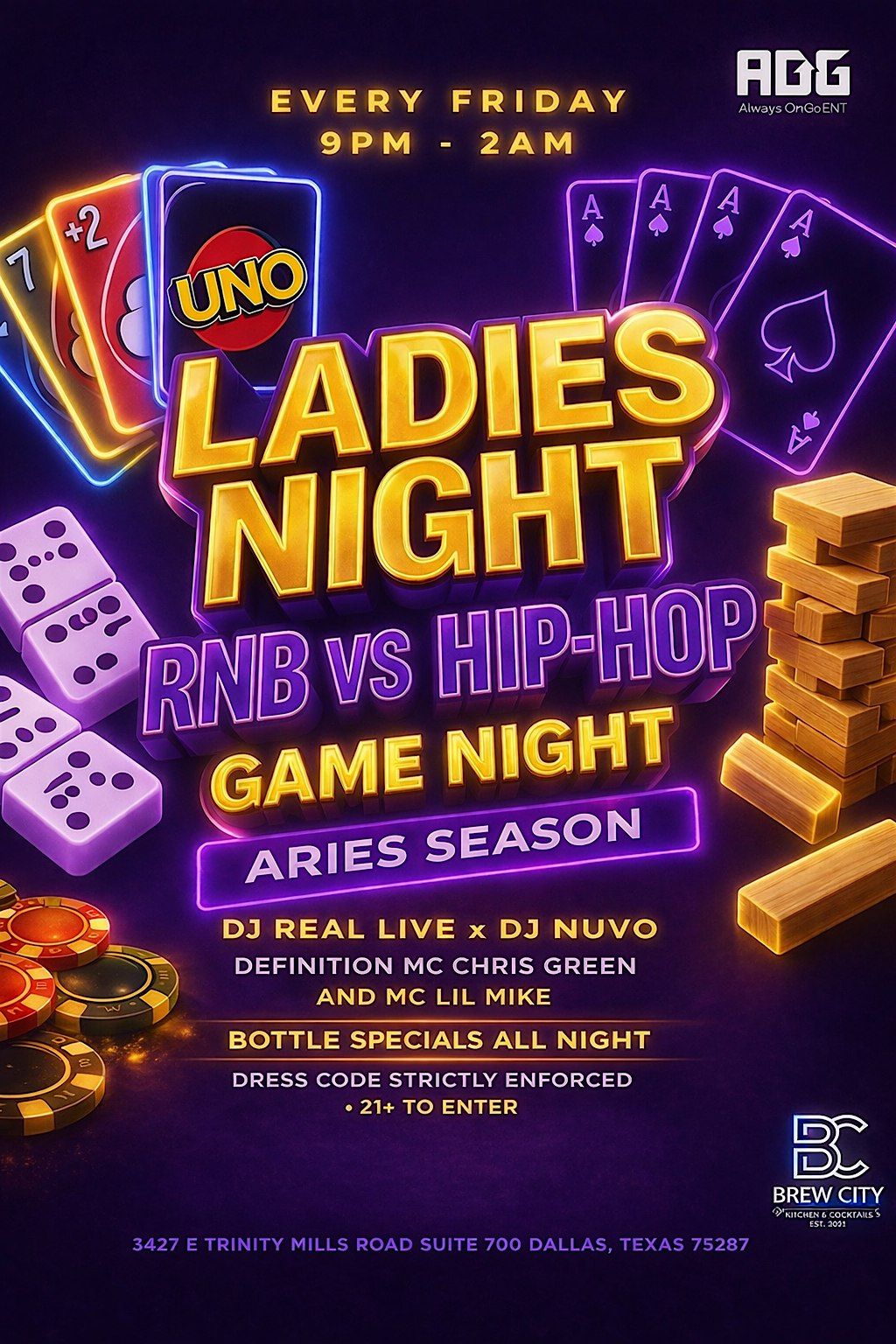 AOG Entertainment Presents Ladies Night + Hip Hop Vs R&B Game Night