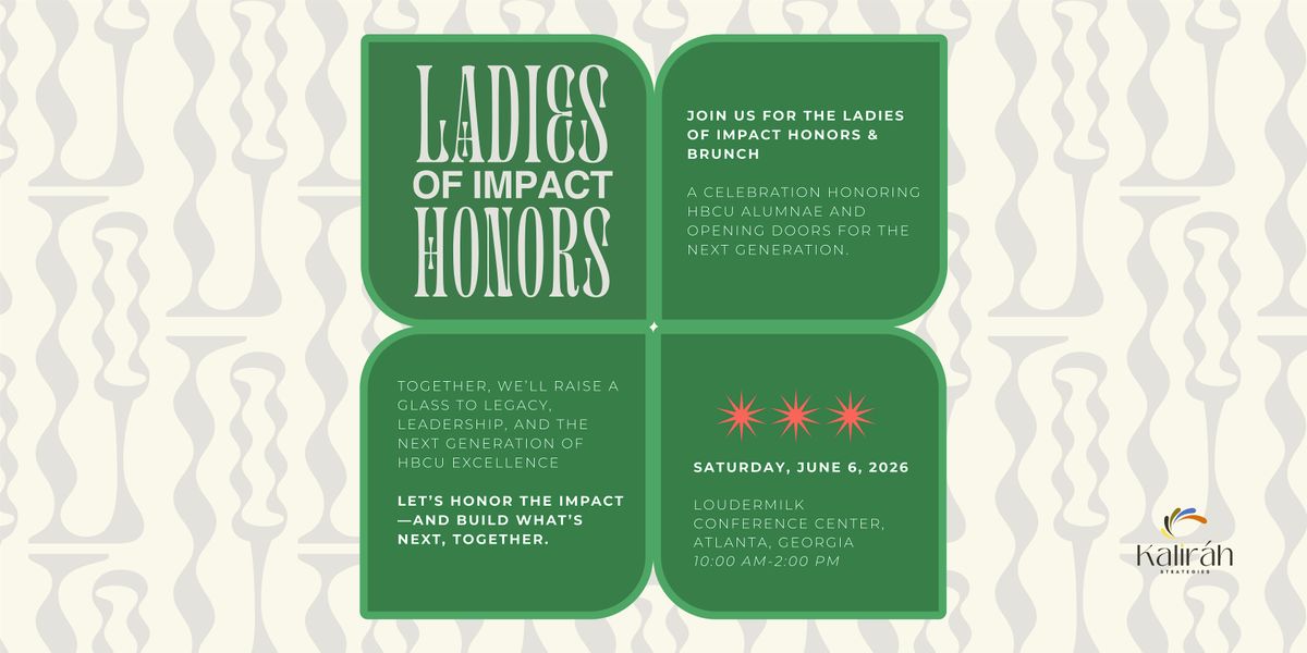 The Ladies of Impact Honors & Brunch is a signature experience celebrating the legacy and leadership of HBCU alumnae. Hosted by Kaliráh Strategies, this curated gathering brings together alumnae, students, and community leaders for an afternoon of recognition, connection, and purpose-driven engagement. Together, we honor women driving impact while building bridges across generations, creating pathways for mentorship, scholarships, and future opportunity.