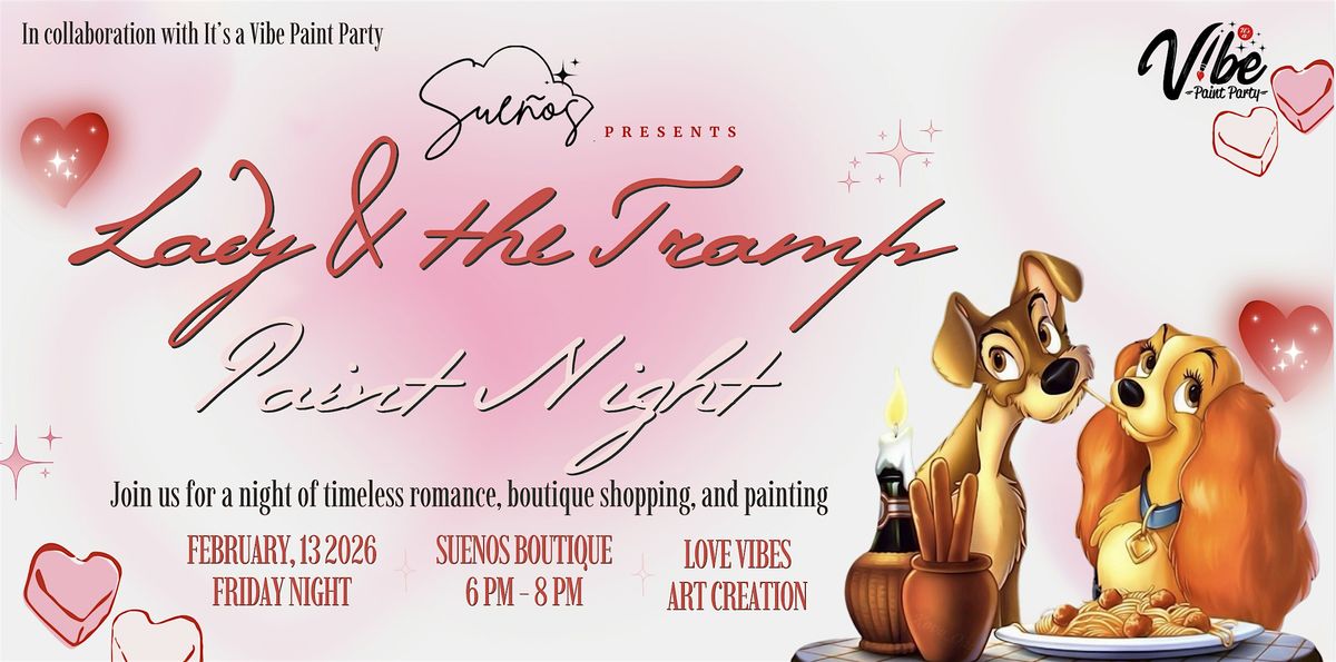 Join us for Lady and the Tramp Valentine's Paint Party on February 13th, 2026 at Sueños Boutique in Downtown San Jose.