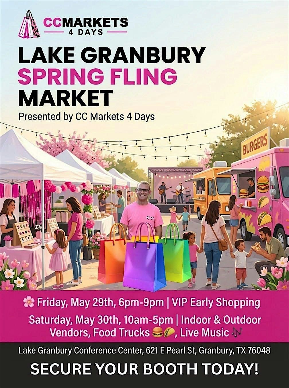 Join us for a two-day Spring Fling Market featuring local small businesses, food vendors, and beautiful lakeside vibes in Granbury! 🌸☀️