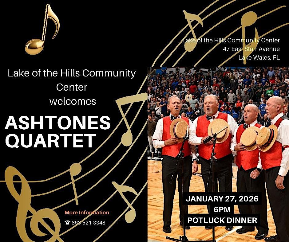 All four members are proud Lake Ashton residents and have been singing together for nearly 8 years. Their performances have included the Orlando Magic National Anthem, Lake Wales Wine events, Make It Magical Christmas, MLK celebrations, and appearances throughout