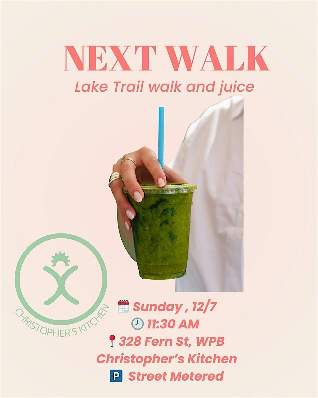 Meet us at the newly re-vamped Christopher’s Kitchen in Downtown West Palm Beach (formerly @merakijuicekitchen ). We’re walking the Lake Trail across both bridges and will come back for juice samples and vegan goodies.