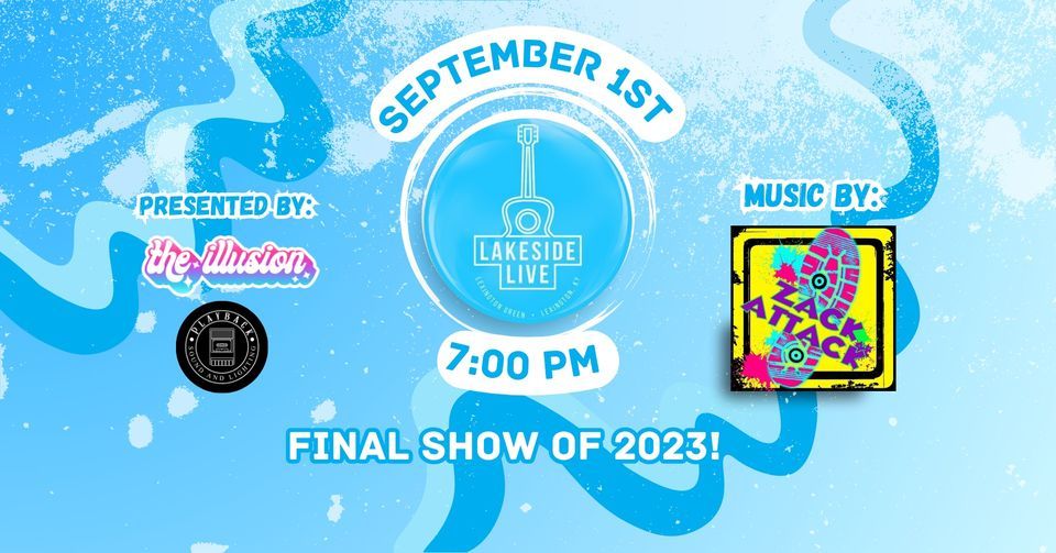 Our LAST show of Lakeside Live 2023 is here!!! Come enjoy a night of live music, food, dancing, and fun on Lexington's biggest "back porch." Let's celebrate the RETURN OF LAKESIDE!!Lakeside is excited to bring the the party with ZACK ATTACK!!!