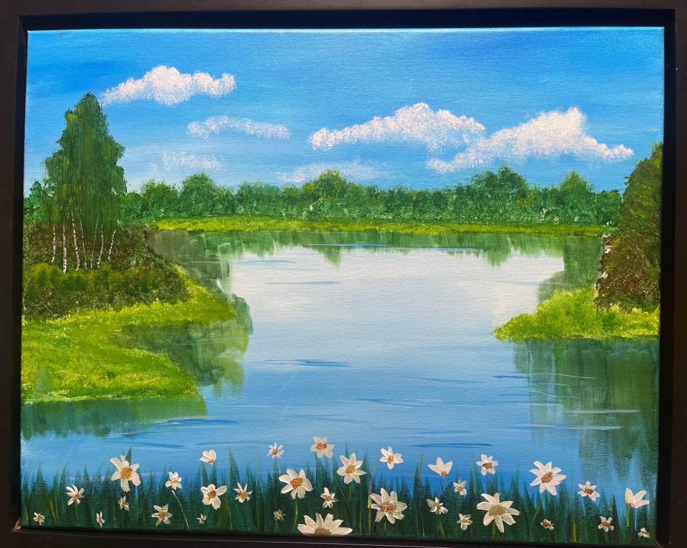 Lakeside View painted on a 16x20 canvas