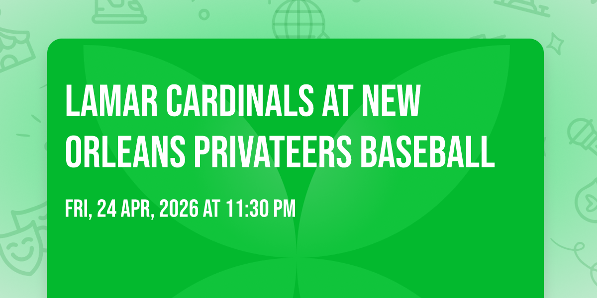 π Location: 29.9985, -90.05π Step into a world of wonder at Lamar Cardinals at New Orleans Privateers Baseball, where extraordinary moments await! ποΈ Located at Maestri Field in dynamic New Orleans, LA, this event will become the talk of the town. π Join us on April 25th, 2026 at 07:00 PM for a celebration that defies the ordinary. β¨ This curated experience brings together the best of entertainment, culture, and community spirit. Every detail has been thoughtfully planned to ensure an unforgettable experience for all our guests. π― Take advantage of this opportunity to be part of something special. π Early registration is recommended as space is limited!