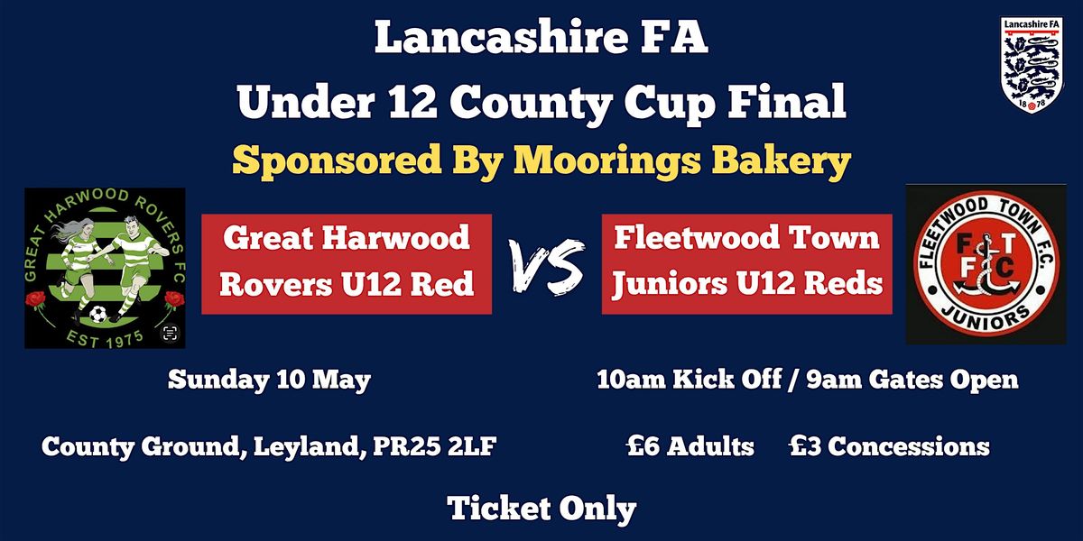 Lancashire FA Under 12 County Cup Final 2026, sponsored by Moorings Bakery