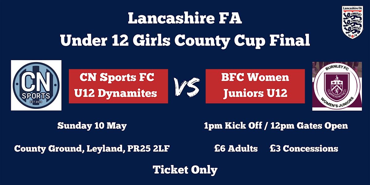 Join us for the Lancashire FA Under 12 Girls Final, on Sunday 10 May 2026 at 1pm. Watch two top teams compete for silverware at the County Ground.