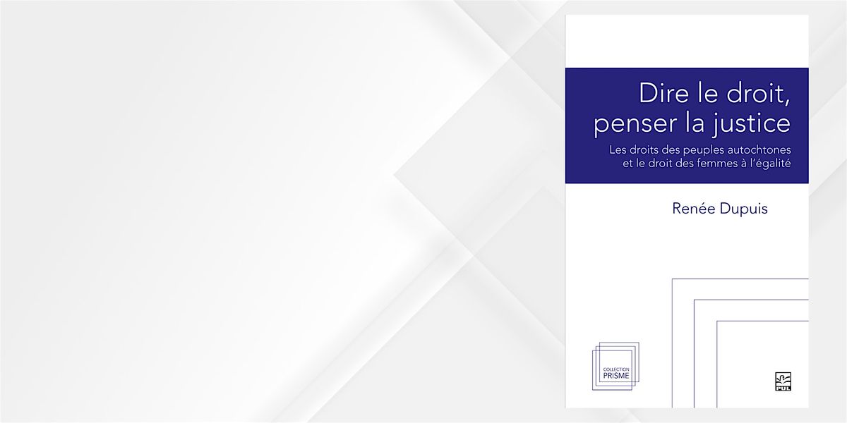 Lancement du livre Dire le droit, penser la justice : les droits des peuples autochtones et le droit des femmes à l'égalité, en compagnie de l'autrice, Renée Dupuis, ainsi que Félix Mathieu et Dave Guénette, directeurs de la collection Prisme aux Presses de l'Univetsité Laval.