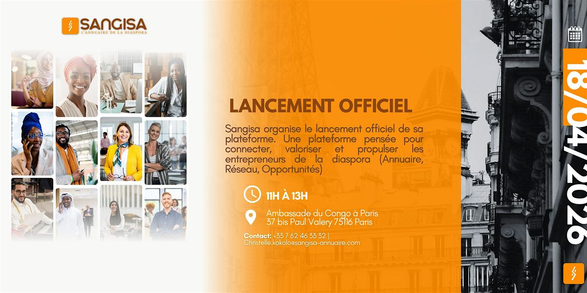 Rejoins-nous le 18 avril 2026 à 11:00 AM (CEST) pour célébrer le lancement officiel de SANGISA ! Un annuaire et réseau professionnel dédié à la diaspora!