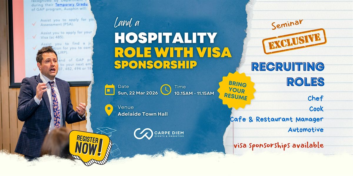 Join us at 10.15 AM at the Adelaide Town Hall as we explore employment opportunities for Chefs, Cooks, Café & Restaurant managers.