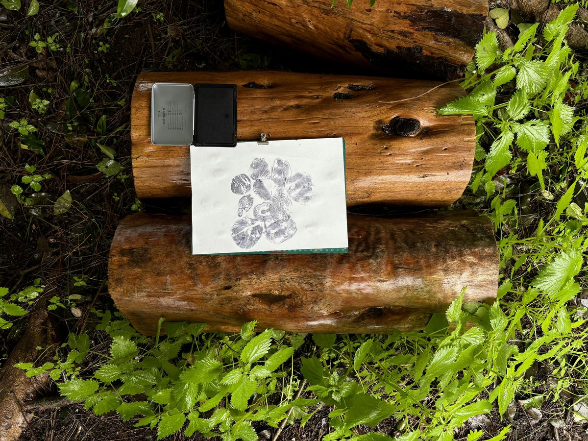 Alongside this, participants practice “texture hunting” by using non-toxic clay to take impressions from surfaces such as bark, stone, walls, or ground. These impressions are inked and stamped onto paper.