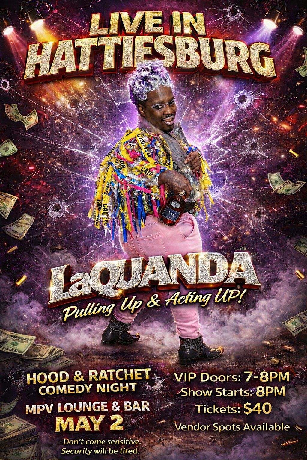 Experience a night of bold, high-energy comedy at Rachet & Hood Comedy Night featuring LaQuanda.