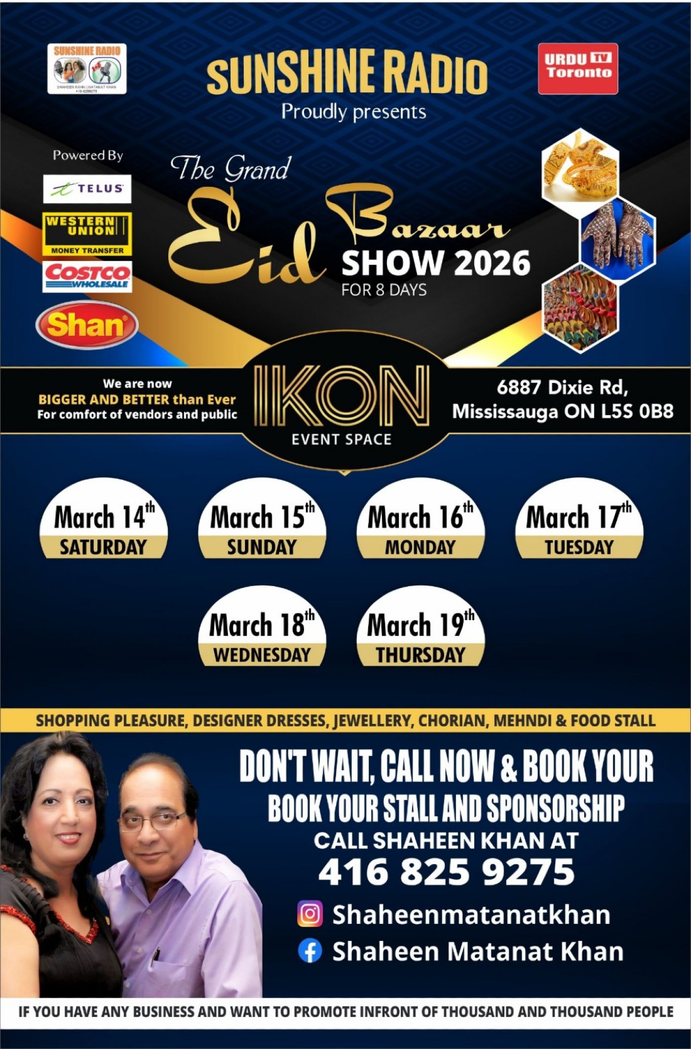 You are cordially invited to join us at the 21st Annual Sunshine Grand Eid Bazaar 2026
