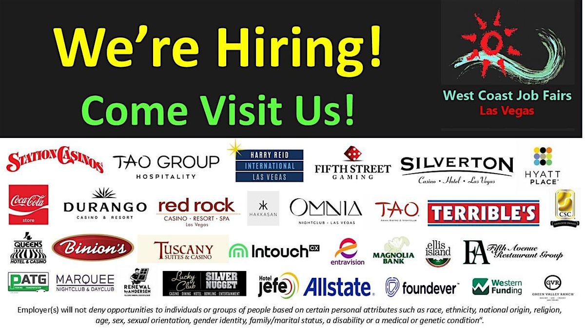 We're Hiring! Harry Reid Int'l Airport, Station Casinos, Silverton Hotel, Terribles, Binion's, Coca-Cola, Tao Group, CSC and many more!About this Event