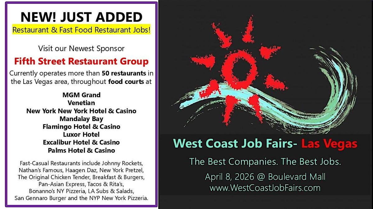 Las Vegas Job Fair! We just added Fifth Street Restaurant Group
