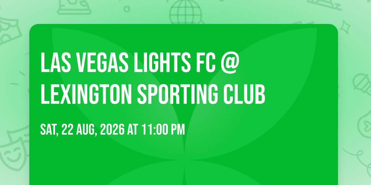 📍 Location: 37.96, -84.39✨ Enter a world of endless possibilities at Las Vegas Lights FC @ Lexington Sporting Club, where every moment tells a story! 🏛️ The stunning Lexington Sporting Club Stadium in vibrant Lexington, KY transforms into a realm of wonder on August 22nd, 2026 at 11:00 PM. 🌟 They have crafted an experience that goes beyond the ordinary, combining elements of surprise, delight, and pure entertainment. Every detail has been thoughtfully considered to ensure your journey with us is nothing short of extraordinary. 🎯 Join fellow adventure seekers and memory makers in this celebration of imagination and innovation. 🎊 Reserve your spot today and be part of something truly special!