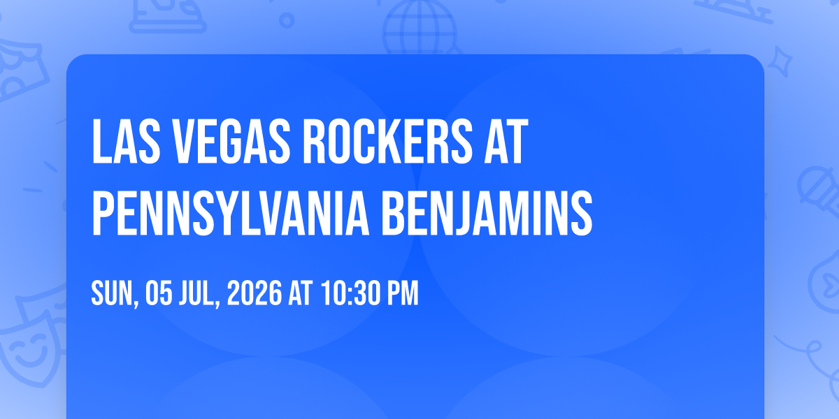 π Location: 40.3351, -75.9233π Welcome to Las Vegas Rockers at Pennsylvania Benjamins, where the impossible becomes possible and dreams take flight! ποΈ Join us at Santander Arena in the heart of Reading, PA for an event that will redefine your expectations. π On July 5th, 2026 at 10:30 PM, witness the transformation of space and time into something truly magical. β¨ It's a curated experience combining the best of innovation, entertainment, and community spirit, creating moments that will be remembered for years to come. Whether you're a first-time visitor or a seasoned enthusiast, prepare to be amazed. π Book now to ensure your place in this unforgettable experience!