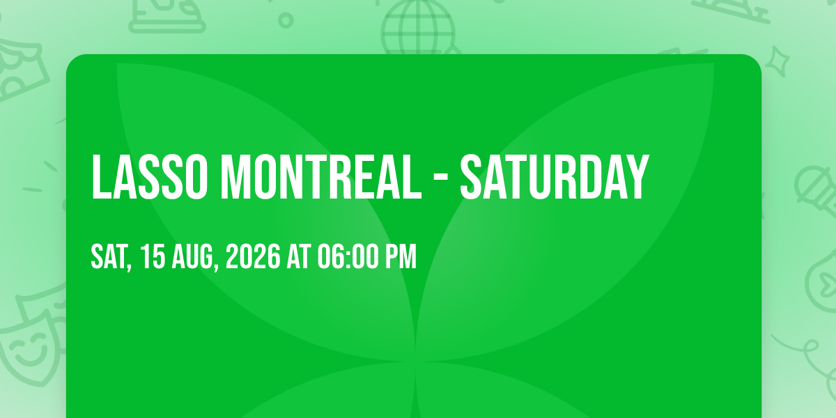 📍 Location: 45.498, -73.5229🎉 Welcome to LASSO Montreal - Saturday, where the impossible becomes possible and dreams take flight! 🏛️ Join us at Parc Jean-Drapeau in the heart of Montreal, QC for an event that will redefine your expectations. 📅 On August 15th, 2026 at 06:00 PM, witness the transformation of space and time into something truly magical. ✨ It's a curated experience combining the best of innovation, entertainment, and community spirit, creating moments that will be remembered for years to come. Whether you're a first-time visitor or a seasoned enthusiast, prepare to be amazed. 🎊 Book now to ensure your place in this unforgettable experience!