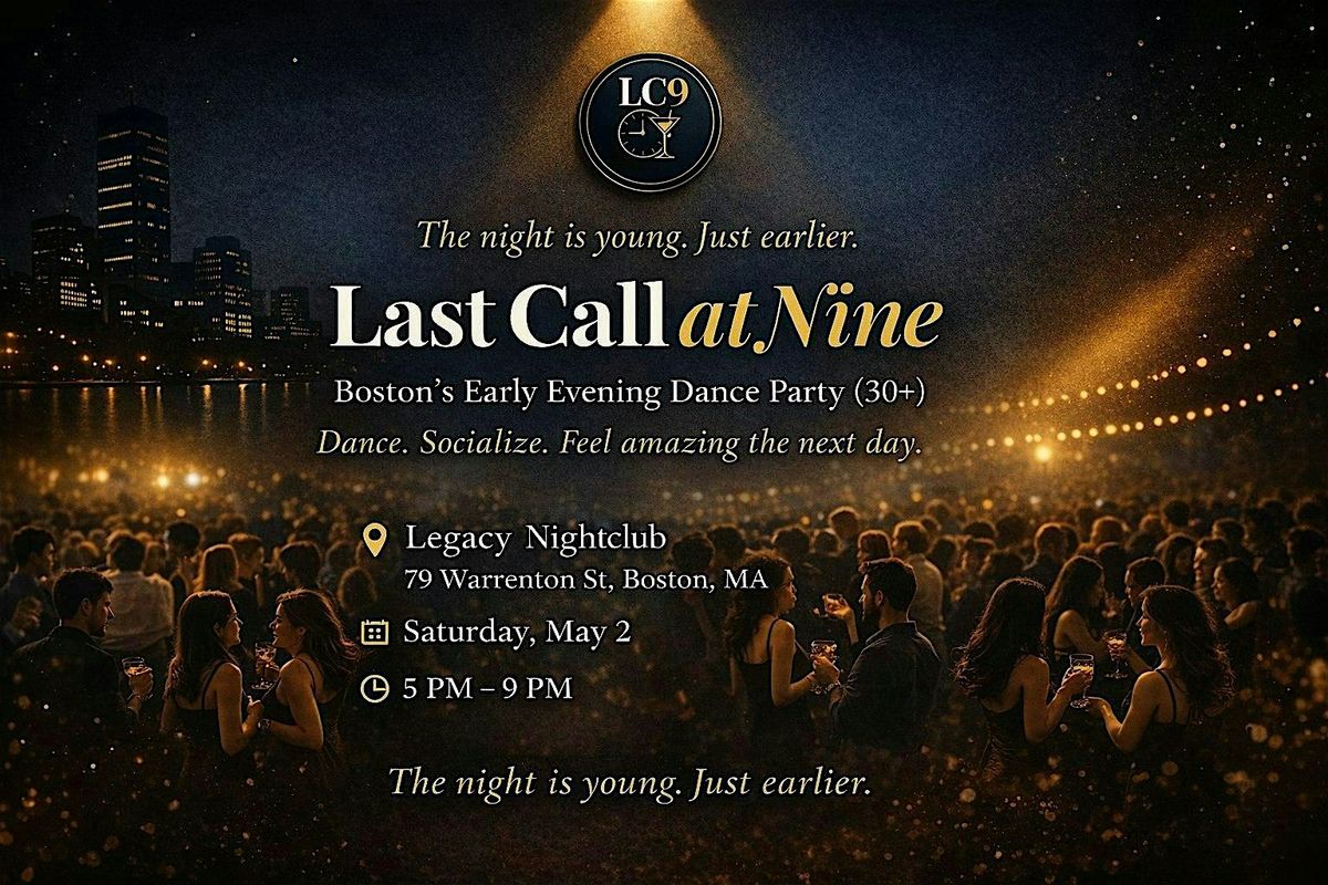 Last Call at Nine is Greater Boston's newest early evening dance event designed for the 30 and up crowd - the ones who love a real night out but have actual lives to get back to. We start the party at 5pm and wrap up by 9pm, so you can dance your heart out and still be home at a reasonable hour.