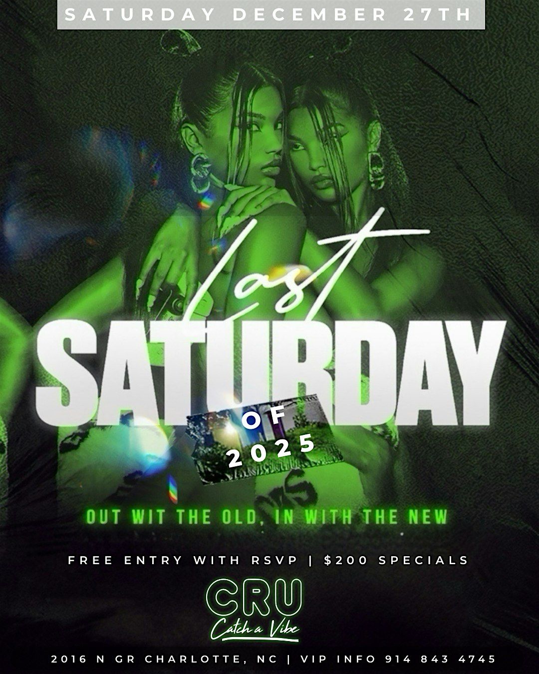 LAST SATURDAY OF 2025Saturday, December 27th — The FINAL Saturday of the year at CRU Charlotte.