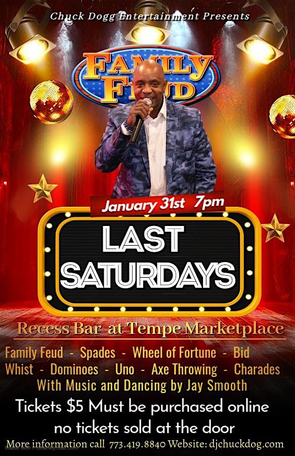 - Family Feud LIVE! – Two teams compete head-to-head just like the TV show, hosted by Chuck Dogg and the Game Night Arizona crew. ($10 to play). Winning team plays fast money for a chance to win $300.00 Since the championship team didn't win Fast Money, the jackpot has increase from $200 to $300.