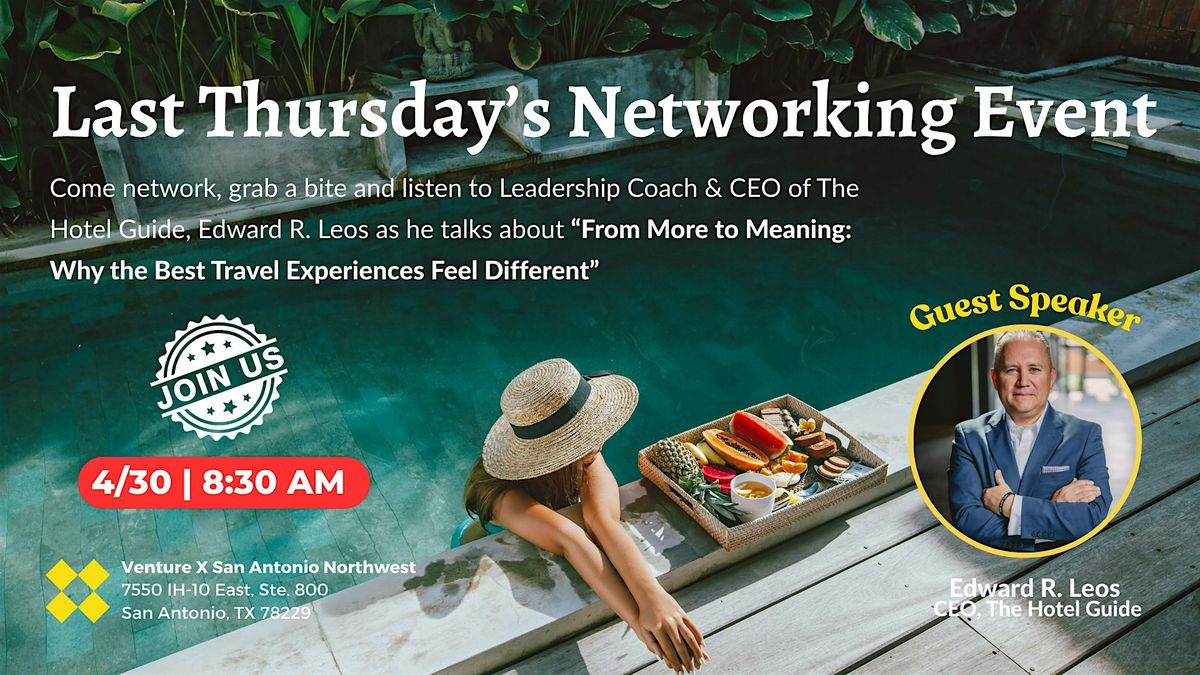 Come connect with ambitious local entrepreneurs! Enjoy a free professional presentation and light refreshments with growth-minded peers. We are excited to announce leadership coach Mr. Edward Leos with The Hotel Guide as thie month's guest speaker.