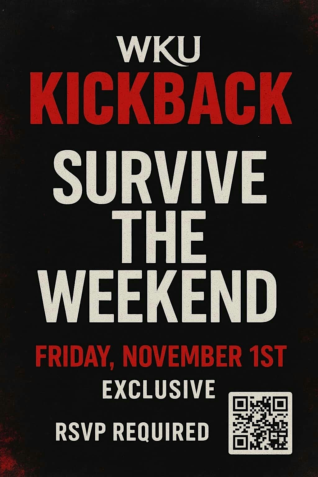 Wait till Nov 1st. WKU Kickback is back with a ‘Survive the Weekend’ vibe. No walk-ups. Strictly limited.