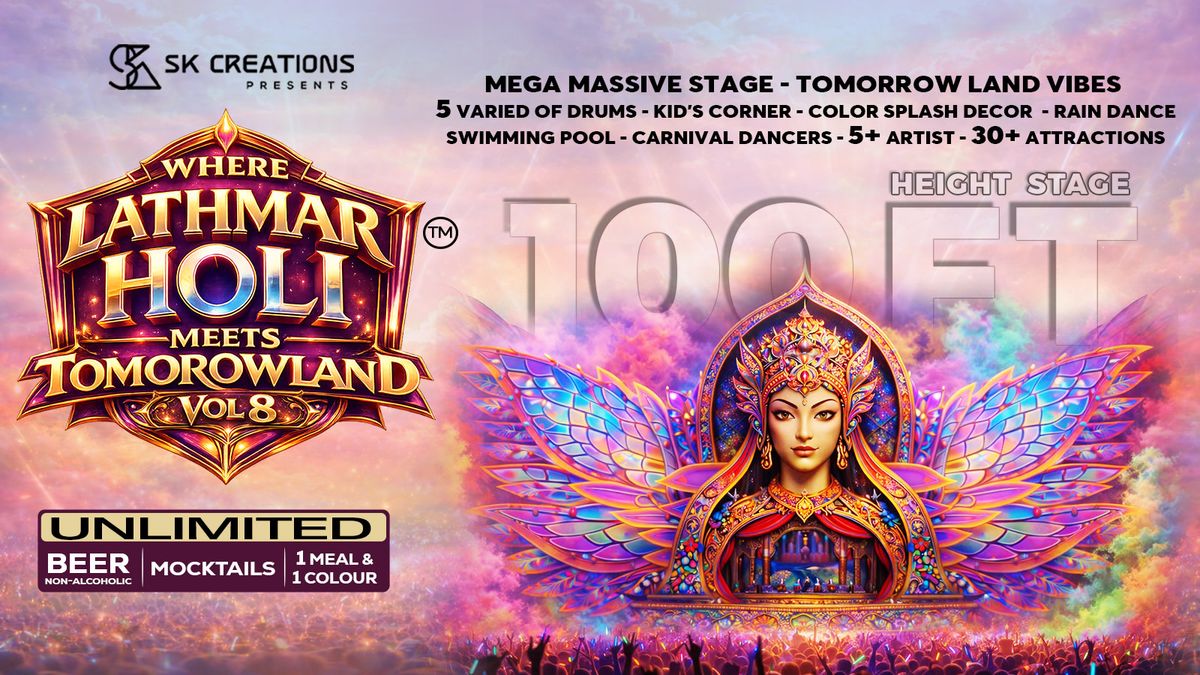Experience Tomorrowland Vibe In Hyderabad...🔥 𝐇𝐈𝐒𝐓𝐎𝐑𝐘 𝐈𝐍 𝐓𝐇𝐄 𝐌𝐀𝐊𝐈𝐍𝐆! 🔥 The 𝐅𝐈𝐑𝐒𝐓-𝐄𝐯𝐞𝐫 𝐌𝐞𝐠𝐚 𝐌𝐚𝐬𝐬𝐢𝐯𝐞 stage in 𝐇𝐲𝐝𝐞𝐫𝐚𝐛𝐚𝐝, standing 100 F𝐞𝐞𝐭 𝐭𝐚𝐥𝐥 𝐚𝐧𝐝 𝟏40 F𝐞𝐞𝐭 𝐰𝐢𝐝𝐞 – and it’s 𝐇𝐔𝐆𝐄!𝐋𝐚𝐭𝐡𝐦𝐚𝐫 𝐇𝐨𝐥𝐢 is taking things to a whole new level with a 𝐌𝐚𝐬𝐬𝐢𝐯𝐞 𝐓𝐨𝐦𝐨𝐫𝐫𝐨𝐰𝐥𝐚𝐧𝐝-𝐬𝐭𝐲𝐥𝐞 𝐬𝐭𝐚𝐠𝐞 and 𝟑𝟎+ 𝐄𝐱𝐜𝐢𝐭𝐢𝐧𝐠 𝐀𝐭𝐭𝐫𝐚𝐜𝐭𝐢𝐨𝐧𝐬For the first time in the city, witness a gigantic stage inspired by the iconic Tomorrowland, crafted to deliver an unreal, world-class festival experience.Last year was MASSIVE — this year, we’re going EVEN BIGGER & BOLDER.This is not just a Holi party, it’s a once-in-a-lifetime celebration and the biggest Holi festival Hyderabad has ever seen.HYDERABAD`S Biggest Open Air Holi Festival at Hitech Arena, Beside Cloud Dining, Hitech City, Madhapur, Hyderabad.7 hours of Non Stop Entertainment (Bollywood DJ’s, Tollywood DJ’S, Music, Performances and Dances) No Stress, No Boundaries, No Rivalries, No Hate. Only Love, Music and Tons of Colourful Smiles. Oh yeah, it`s that time of year again. It’s time to get coloured at HYDERABADS`s finest & most colourful multi genre Holi party with 𝐓𝐨𝐦𝐨𝐫𝐫𝐨𝐰𝐥𝐚𝐧𝐝-𝐬𝐭𝐲𝐥𝐞 𝐬𝐭𝐚𝐠𝐞, 𝐃𝐉, 𝐃𝐡𝐨𝐥, Royal Deck Seating ,Unlimited 𝐁𝐞𝐞𝐫 (𝐧𝐨𝐧- 𝐚𝐥𝐜𝐨𝐡𝐨𝐥𝐢𝐜), 𝐒𝐩𝐥 𝐓𝐡𝐚𝐧𝐝𝐚𝐢 And Many more Around 15 K Plus people attending the celebrations.Special Event Attractions:· 𝐅𝐈𝐑𝐒𝐓-𝐄𝐯𝐞𝐫 𝐌𝐞𝐠𝐚 𝐌𝐚𝐬𝐬𝐢𝐯𝐞 stage in 𝐇𝐲𝐝𝐞𝐫𝐚𝐛𝐚𝐝, standing 100 F𝐞𝐞𝐭 𝐭𝐚𝐥𝐥 𝐚𝐧𝐝 𝟏40 F𝐞𝐞𝐭 𝐰𝐢𝐝𝐞· Royal Deck seating· Royal Deck Standing· Non-stop music· Rain dance· Colour Confetti Showers · Dhol Punjabi· Maharastra Jalna Pad Band· Djembe· Telangana Dappul· Hyderabadi Marfa· Bull ride· Holi Spl thandai· 5+ Artist· Organic Colours· Face painting· Tattoos· Live camels· Live horses· Balloon fight· Carnival characters show· Colour smoke· Massive Colour Blasts· Inflatable ring game· Hammer game· Gun shooting· Glass throw game· Basketball game· Balloon house· Mouth Watering Food Stalls· Amazing Rides for Kids and Adults· Live Performance by Dj Artists· Phot booth· 360 degree Camera 🌟 Why Attend LATHMAR Holi Festival? · Venue: Large open space with 15000 people capacity. The venue is transformed into a festive and welcoming space.· History of Lathmar holi: For Seven consecutive years, we`ve proudly stood at the forefront of Holi celebrations in Hyderabad, adding vibrant hues and boundless happiness to the cityscape. As pioneers in crafting unforgettable Holi experiences, we`ve had the privilege of welcoming lakhs of revelers to our joyous festivities, making memories that last a lifetime1. Expertise: With half a decade of experience under our belt, we know what it takes to orchestrate a truly spectacular Holi event. From meticulous planning to flawless execution, we leave no stone unturned in ensuring a seamless experience for our guests.2. Innovation: Each year, we strive to raise the bar higher, introducing innovative elements and fresh concepts to keep the celebrations dynamic and engaging. From traditional rituals to modern twists, there`s something for everyone at our events.3. Safety First: Your safety is our top priority. We adhere to stringent safety protocols and guidelines to ensure a secure environment for all attendees. With us, you can immerse yourself in the festivities with peace of mind. · Family-Friendly: A Day filled with family-friendly activities, ensuring a joyful and memorable experience for all age groups. · Venue safety: Ample 5 Acre Free Car Parking, Security and Police Presence, kids friendly, Non-Alcoholic EventGet your Colours, grab your besties and jump right into the thick of it, as there is song and dance everywhere! There will not be a single dull moment - THAT is what we can Promise You 🤝This one is going in the history books #LATHMARHOLI! GOLD Ticket: · If you prefer the full VIP experience with an elevated stage view and exclusive premium area. this is it!· Skip the long Queues and Enter through a separate dedicated GUARANTEED EXPRESS Entry.· This ticket includes unlimited thandai, beer (non alcoholic), soft drinks, one veg meal box and 1 organic colour VIP Ticket: · Skip the long Queues and Enter through a separate dedicated GUARANTEED EXPRESS Entry.· This ticket includes unlimited thandai, beer (non alcoholic),soft drinks, one veg meal box and 1 organic colour 🌈 Spread the Joy, Share the Love!Tag us on social media Instagram id: Lathmar_holi_hyderabad and share your colourful moments with the world! Note: 1. All the ticketing categories have access to all theattractions.2. Kids under 3 years free entry in all category tickets.3. Changing rooms are available at Venue