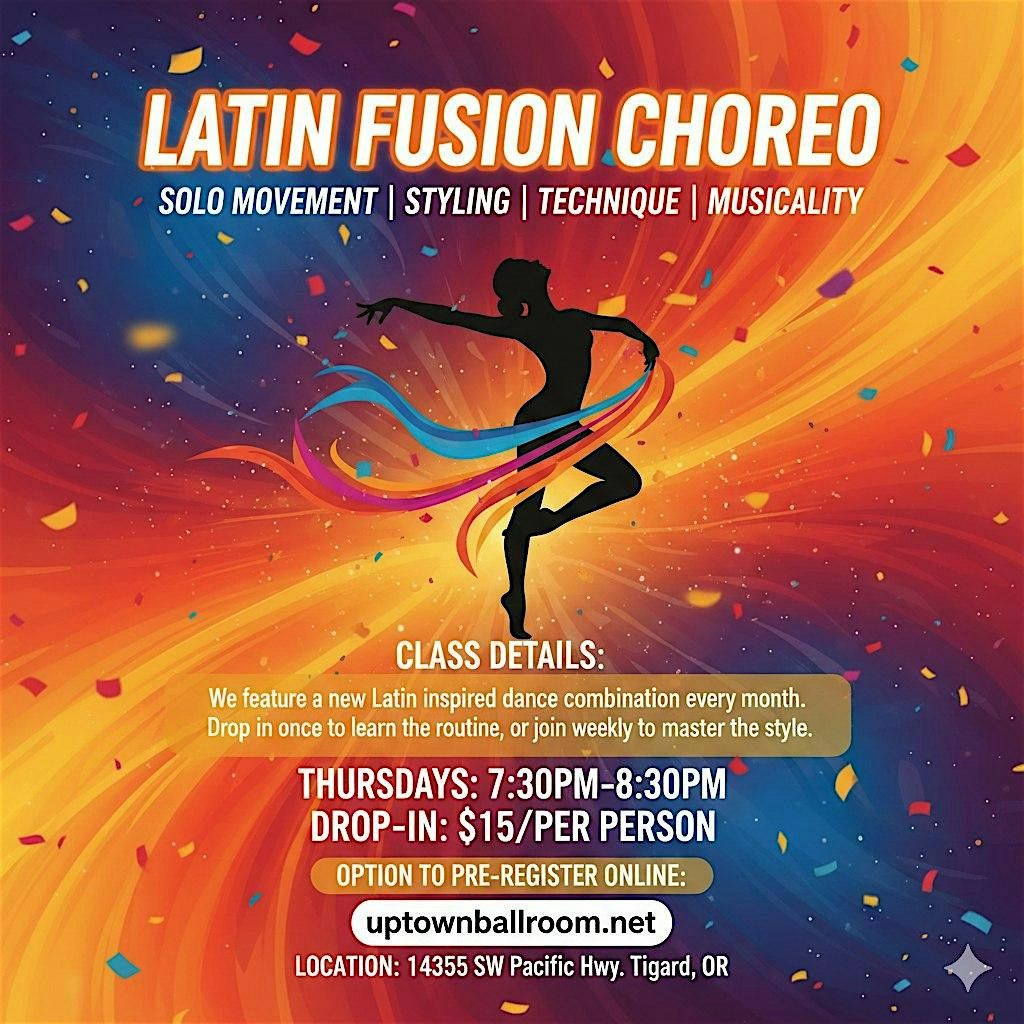 Get ready to move and groove at our Latin Fusion Choreo class! This open level event is perfect for anyone who loves dancing or wants to spice up their skills. Whether you're a beginner or have some experience, come join us in person for a fun session filled with vibrant beats and smooth moves. It's all about mixing styles and feeling the rhythm, so bring your energy and let’s dance!