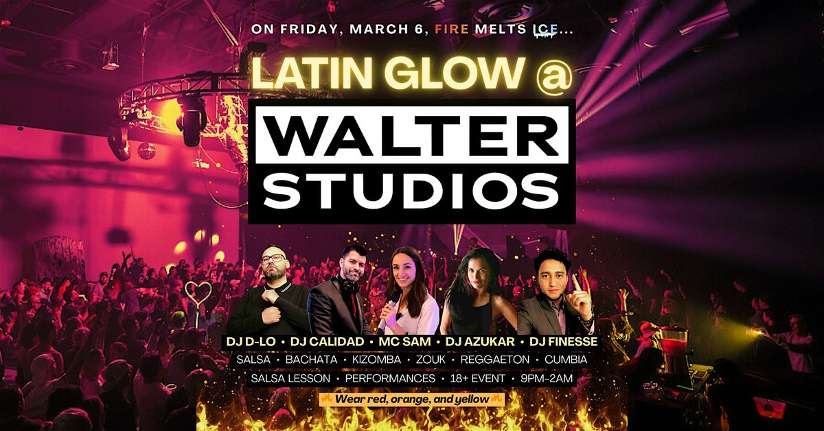On Friday, March 6, fire melts ice π₯ Latin Glow at Walter Studios is brought to you for the very first time by some of Phoenixβs favorite social dance DJs, promoters, and dance groups. We'll be bringing FUEGO to the Walter dance floor all night long with the best salsa, bachata, reggaeton, cumbia, kizomba, and zouk!