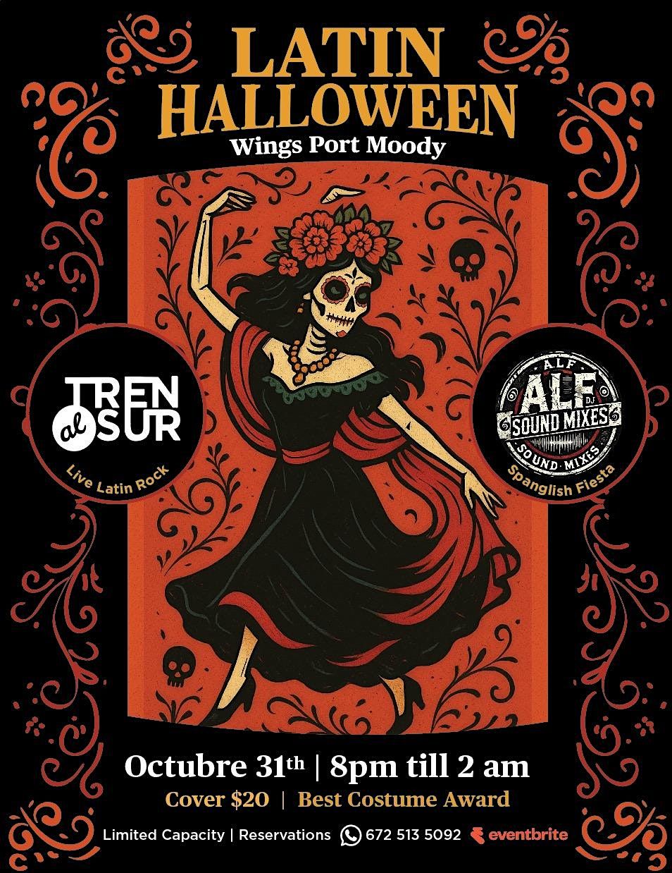 The ultimate Latin Halloween! Live rock with Tren al Sur + ALF Sound Mixes Spanglish Fiesta. Individual and group costume prizes await