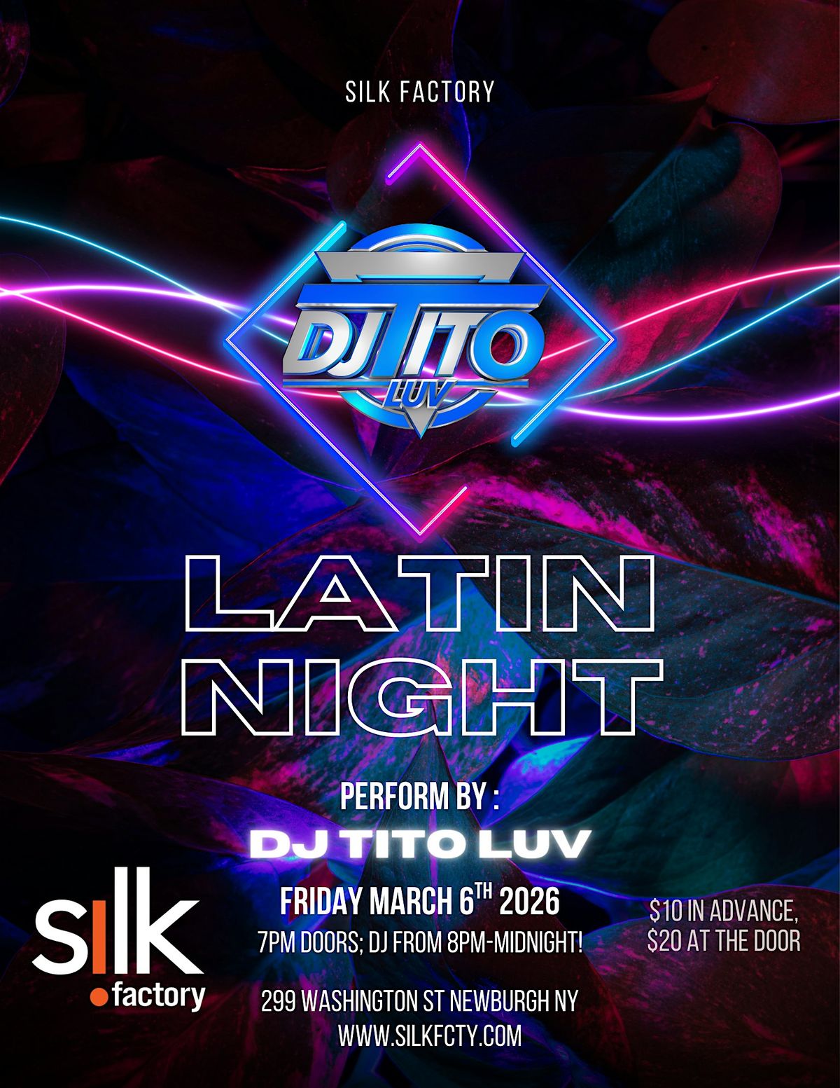 Get ready for a night full of Latin vibes and good times! Join us in person at the Silk Factory for an unforgettable evening of dancing, great music, and awesome company. Whether you’re a salsa pro or just want to have some fun, this is the night to let loose and enjoy the rhythm. Don’t miss out on the energy and excitement—see you there!