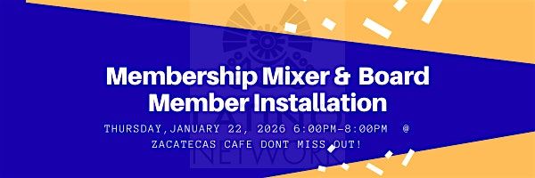 Come join us to our annual Membership Mixer & Board Installation Event! Warm camaraderie, a dicho, delicious antojitos, and great music. FREE for paid-members, $20 non-paid members. To become a member please visit https://www.riversidelatinonetwork.org/membership/
