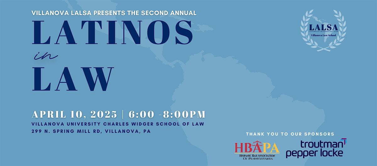 Join the Villanova Latin American Law Student Association (LALSA) for our second annual Latinos in Law. This event will provide a space for networking and fostering community among Latino lawyers featuring a fireside chat with the Honorable Nitza I. Quiñones Alejandro of the Eastern District of Pennsylvania.