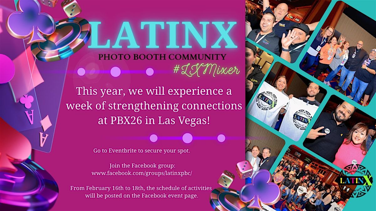 Join the LatinX Photo Booth Mixer & More at PBX26, Las Vegas! ¡Únete al LatinX Photo Booth Mixer y Más en PBX26! Connect, learn & have fun!About this Event