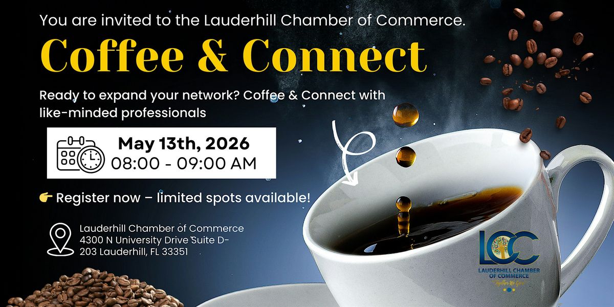 Join the Lauderhill Chamber of Commerce Coffee & Connect networking event, a morning business networking opportunity designed to bring local professionals together in a relaxed and welcoming setting.