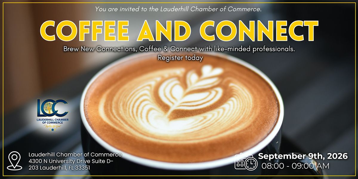 Brew new connections over coffee at Coffee and Connect, a morning networking event hosted by the Lauderhill Chamber of Commerce. This gathering brings together like-minded professionals, entrepreneurs, and business leaders in a relaxed setting designed to spark meaningful conversations and lasting connections.