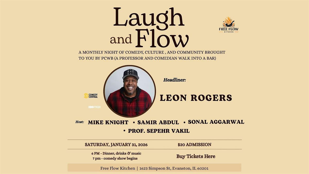 Join us for Laugh and Flow, a monthly evening that brings together comedy, music, and good vibes at Free Flow Kitchen in Evanston!