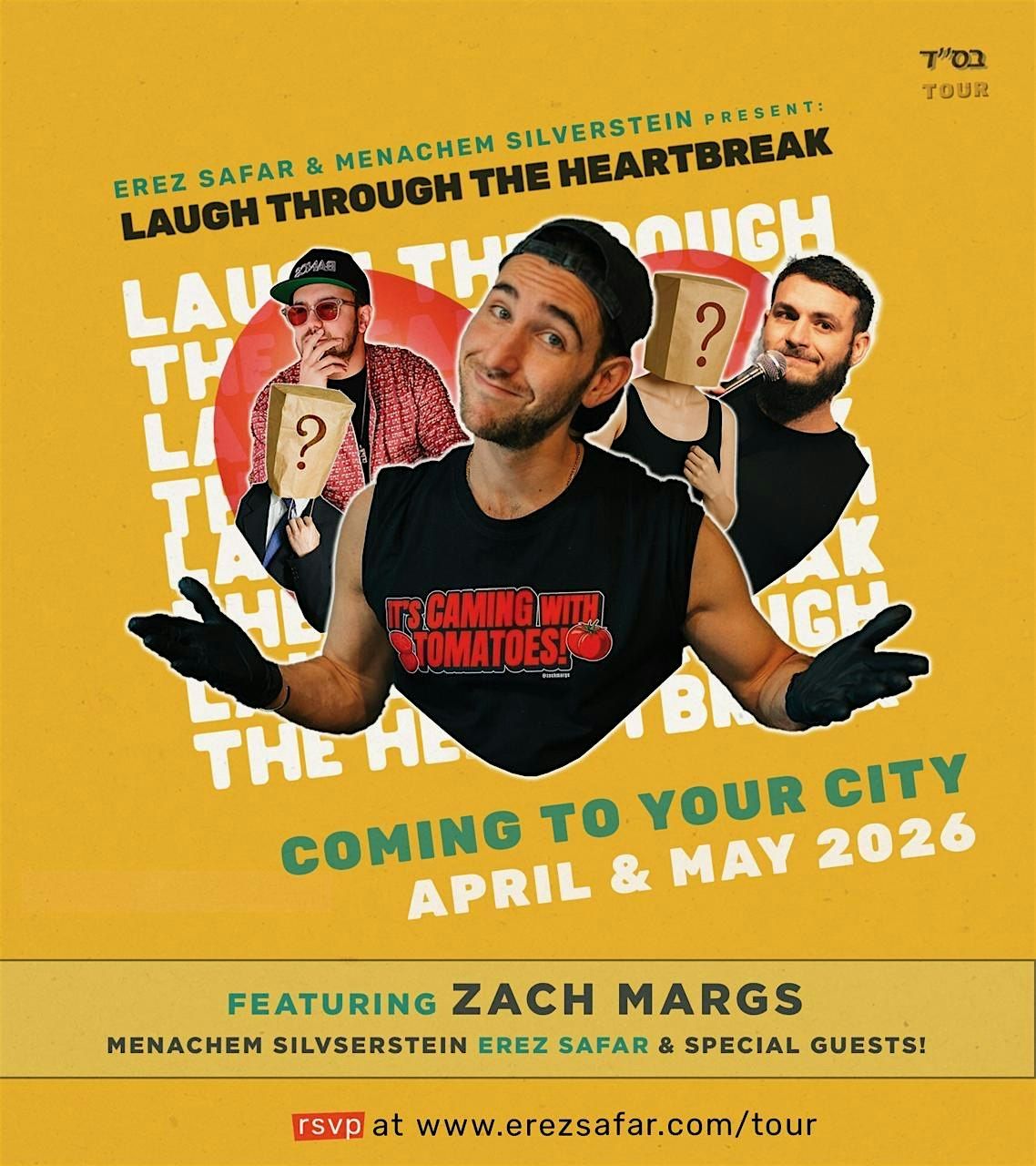 Laugh Through The Heartbreak series is an eccentric night of irreverent comedy. It has sold-out every show and city it's been to and has featured everyone from Jo Koy and Elon Gold to TIffany Haddish and Ronny Chieng. This comedy series, the brainchild of Erez Safar, and co-produced by Menachem Silverstein, is a traveling ensemble that incorporates both local comics and well-known comedic voices to create an incredible night you'll never forget.