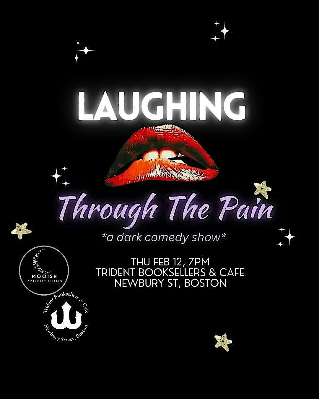 Get ready to crack up and forget all your worries! Join us for an in-person night filled with hilarious jokes, sharp punchlines, and plenty of laughs at the cozy Trident Cafe. Perfect way to lighten your mood and enjoy some great company. Don't miss out on Laughing Through the Pain—where comedy meets catharsis!