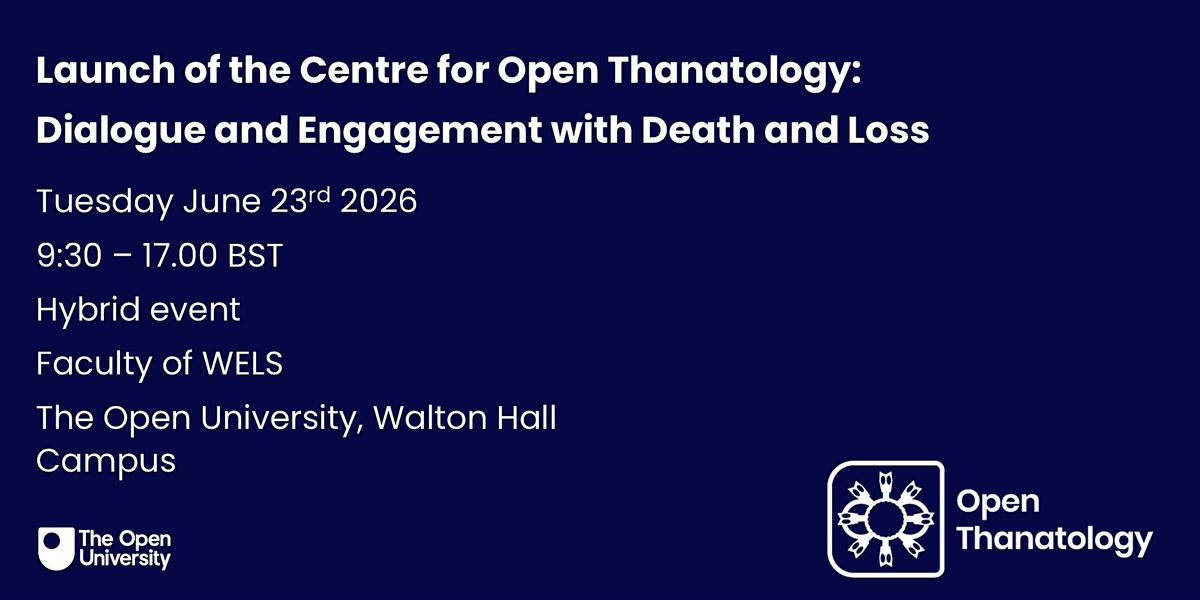 Join us for the launch event for The Centre for Open Thanatology. It is The Open University’s interdisciplinary research centre dedicated to the study and education of death, dying, loss, and grief across the life course and in diverse contexts. The theme for the day is Dialogue and Engagement with Death and Loss, reflecting the Centre’s vision to use research and education to foster open dialogue and critical engagement with death and loss.