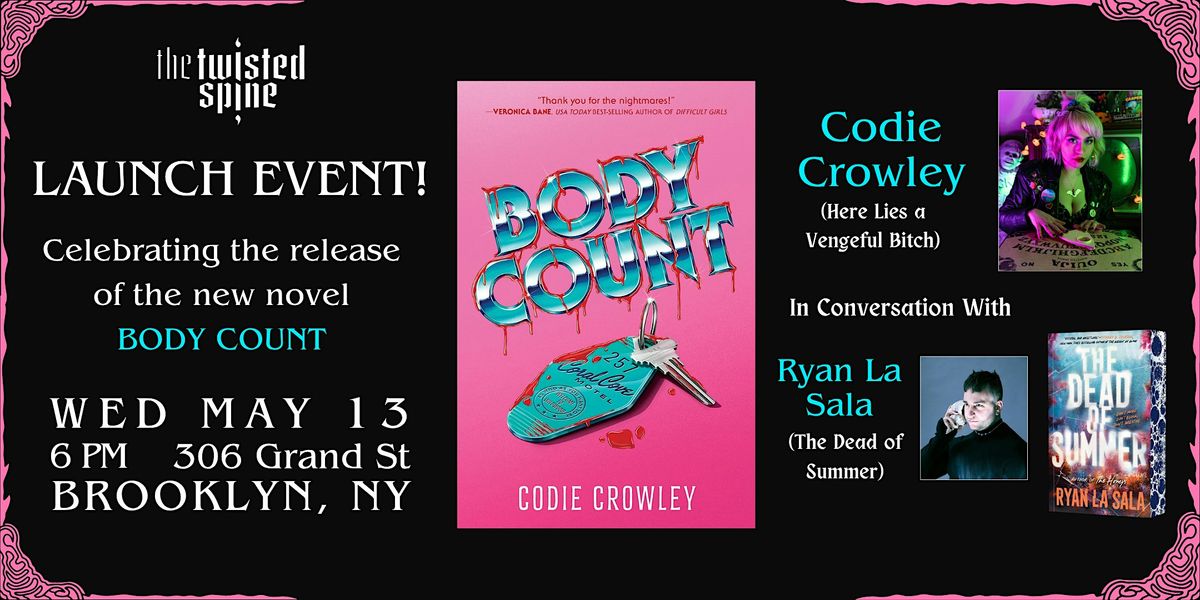 We're thrilled to welcome Cody Crowley to The Twisted Spine for the release party of BODY COUNT. Cody will be joined in conversation by author Ryan LaSala (The Dead of Summer).