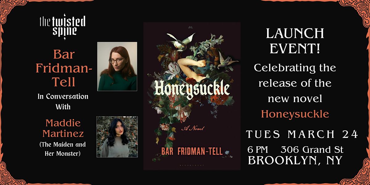 Join us on March 24, 2026 at 6:00 PM for the unveiling of the exciting new release HONEYSUCKLE by author Bar Fridman-Tell. Joining Fridman-Tell in conversation will be author Maddie Martinez (THE MAIDEN AND HER MONSTER).
