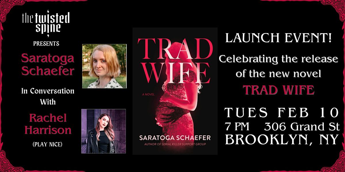 Join us on February 10, 2026 at 7:00 PM for the unveiling of the exciting new release TRAD WIFE by author Saratoga Schaefer. Joining Saratoga in conversation will be author Rachel Harrison (PLAY NICE).