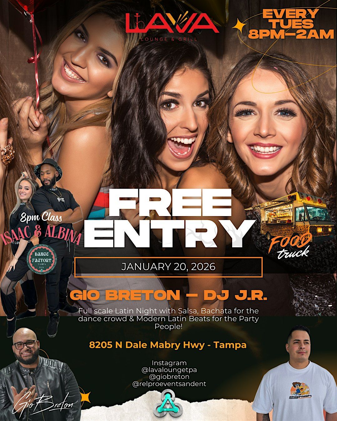 #LavaLoungeTampa #LatinNightTampa #TacoTuesday #SalsaAndBachata #TampaNightlife #RELProEvents #GioBreton #TampaDancing #DaleMabry #TampaHookah
