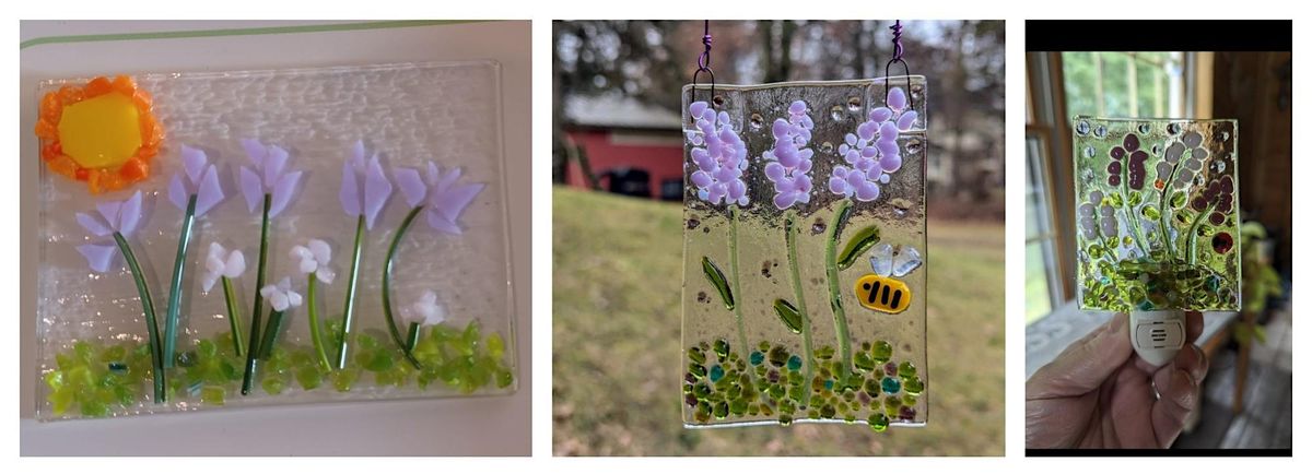 All materials will be provided and this class can be considered a beginner friendly class. No experience needed. Laurie with Kiss My Glass will show you how easy it is to assemble just like a puzzle and make your flowers beautiful! This class is appropriate for children age 10+ who are accompanied by a paid adult and cut the glass for them (need to purchase 2 spots) Approx size: Nightlight 3" Suncatcher 4"